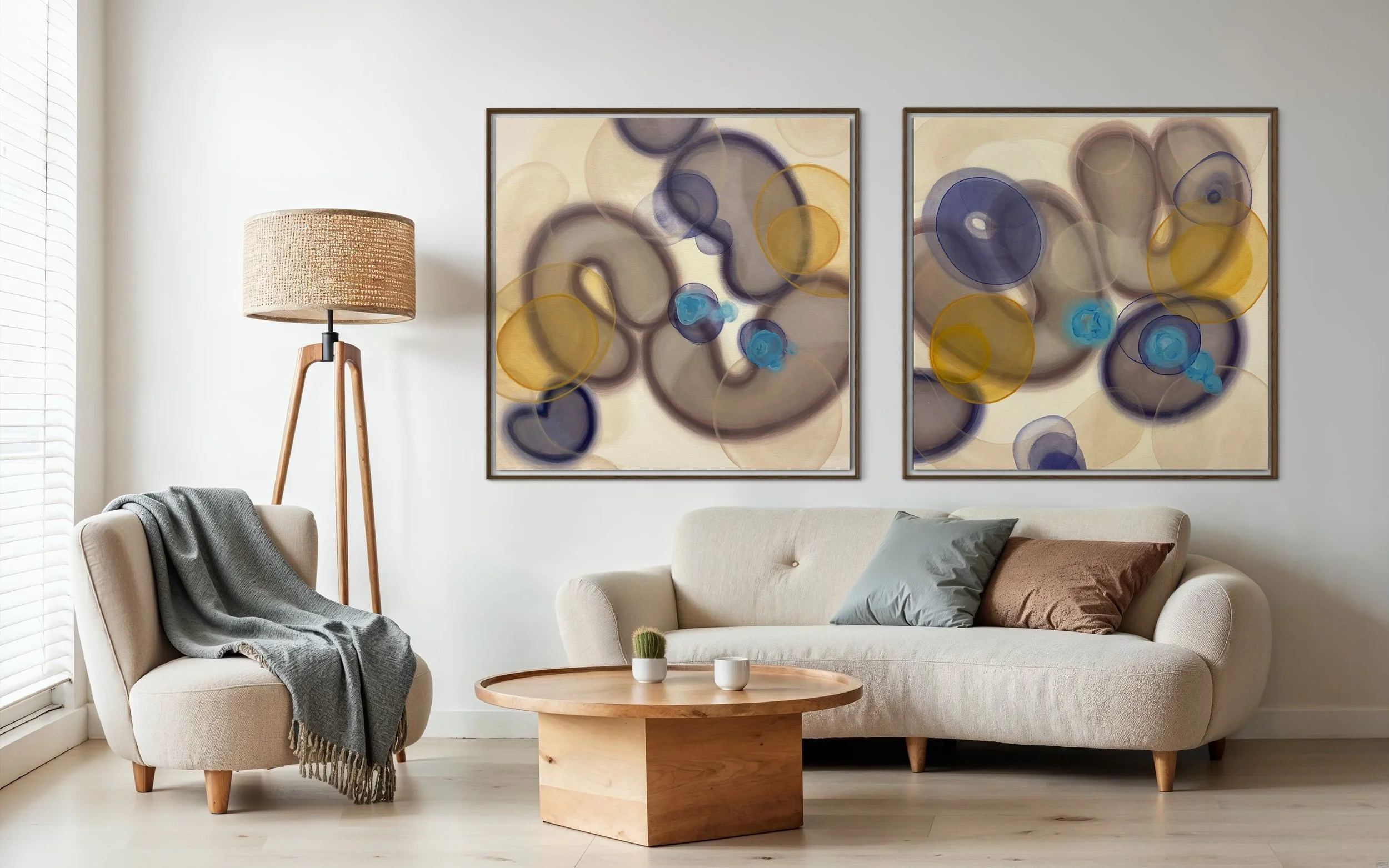 Prints and Paintings … my working process courts the greater possibility of anomalies and undetermined outcomes. Gravity actioning the movement of water, has evolved as a ‘go to’ element, though I will resort to other factors to summon unpredictably as needed.